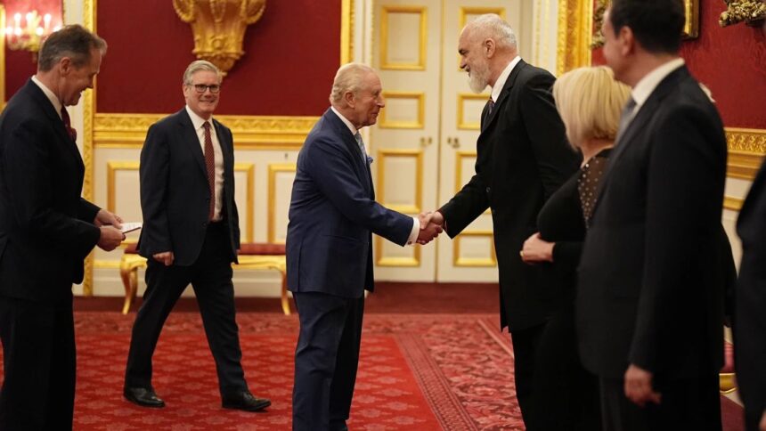 – Kryeministri i Republikës së Shqipërisë, z. Edi Rama, u prit sot në një ceremoni zyrtare nga Madhëria e Tij, Mbreti Charles III i Mbretërisë së Bashkuar, në Pallatin e Shën Jakobit (St James’s Palace) në Londër.