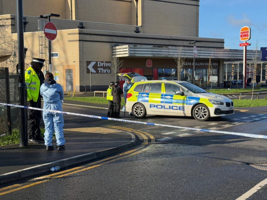 Sipas policisë, shërbimet e emergjencës u thirrën rreth orës 01:15 të së dielës (15 shkurt 2026) në Valley Retail Park, pas raportimeve për një incident të dhunshëm. Në vendngjarje u gjetën tre burra me plagë të shkaktuara nga mjete prerëse.